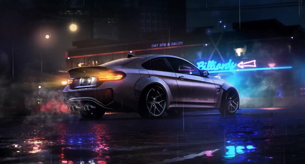 The BMW M4 has always been a symbol of power and elegance, but when captured under rainy streets at night, it takes on an entirely new identity. A 4K live wallpaper of the M4 in this setting transforms your screen into a cinematic scene where reflections, shadows, and raindrops merge into a masterpiece of motion and stillness.