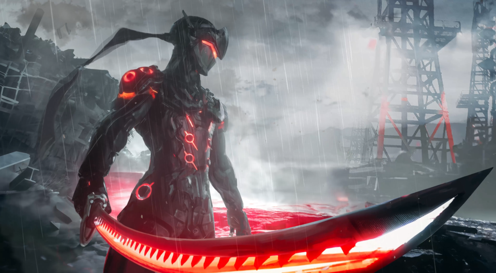 • Lighting Effects – Dark, neon-lit scenes highlight Genji’s cybernetic design.
